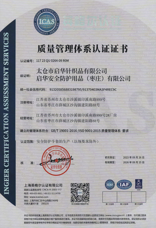 質量管理體系認證證書